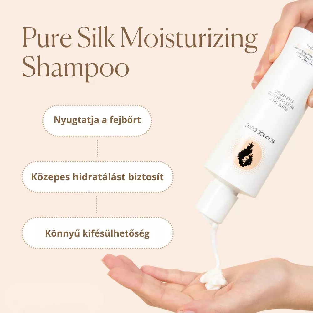 Használata: Alaposan vizezd be a hajad meleg vízzel. Tegyél egy kis mennyiségű Pure Silk Moisturizing sampont a tenyeredbe, és dörzsöld össze (emulgeáld). Gyengéden masszírozd a sampont a fejbőrödbe és a hajadba, amíg habot nem képez. Alaposan öblítsd le meleg vízzel, ügyelve arra, hogy minden maradványt eltávolíts. Az extra hidratálás érdekében vigyél fel egy második kis adagot, habosítsd fel, majd öblítsd le újra. A legjobb eredmény elérése érdekében használd kedvenc Bounce Curl kondicionálódat vagy hajápolódat.